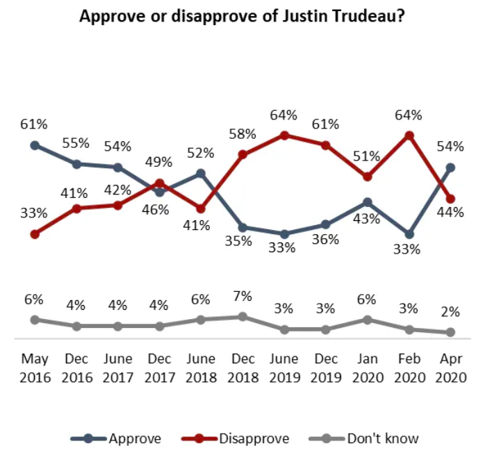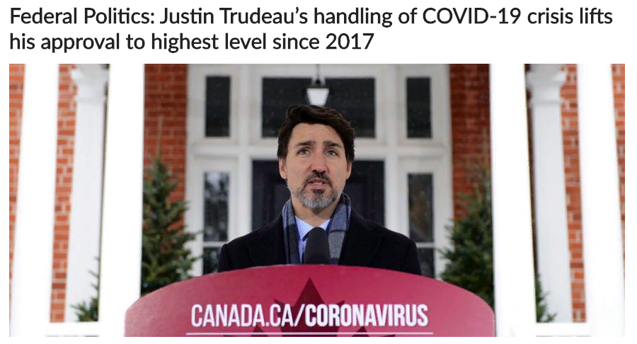 从民调结果来看,加拿大人对杜鲁多政府处理新型冠状病毒大流行的表现感到满意,因此也使得特鲁多的民众支持率升至超过50%,这是近两年来未见的现象。