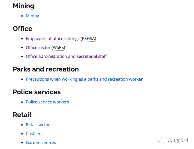 此外,本省劳工、培训暨技能开发厅(Ministry of Labour, Training and Skills Development)与全省各健康安全协会(HSA)针对各行各业,已公布超过80条安全复工准则,其中为如何进行路边取货或送货服务提供了相关指引。同时,本省卫生厅也公布了《必需工作场所指导文件》。
