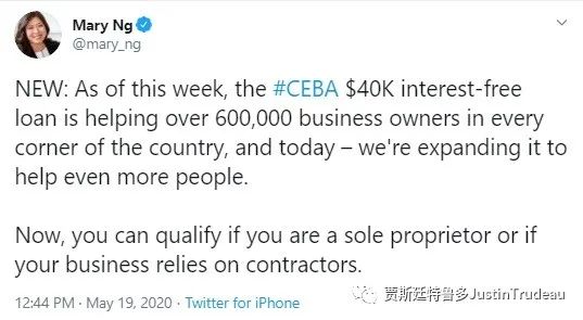 在这个星期,加拿大紧急商业款项CEBA的4万元无息贷款已经帮助了全国各地600,000家工商业主。而现在,我们又再次拓宽它的资格范围,以帮助更多的民众。