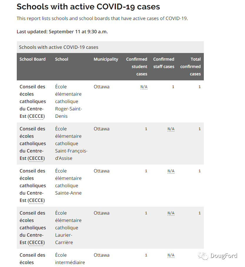 该网页将每工作日更新,上传最新的新冠病毒信息。内容包括学校和托儿中心内病例情况。民众可以知道校内是否有确诊病例,以及究竟是教职工或学生感染。
