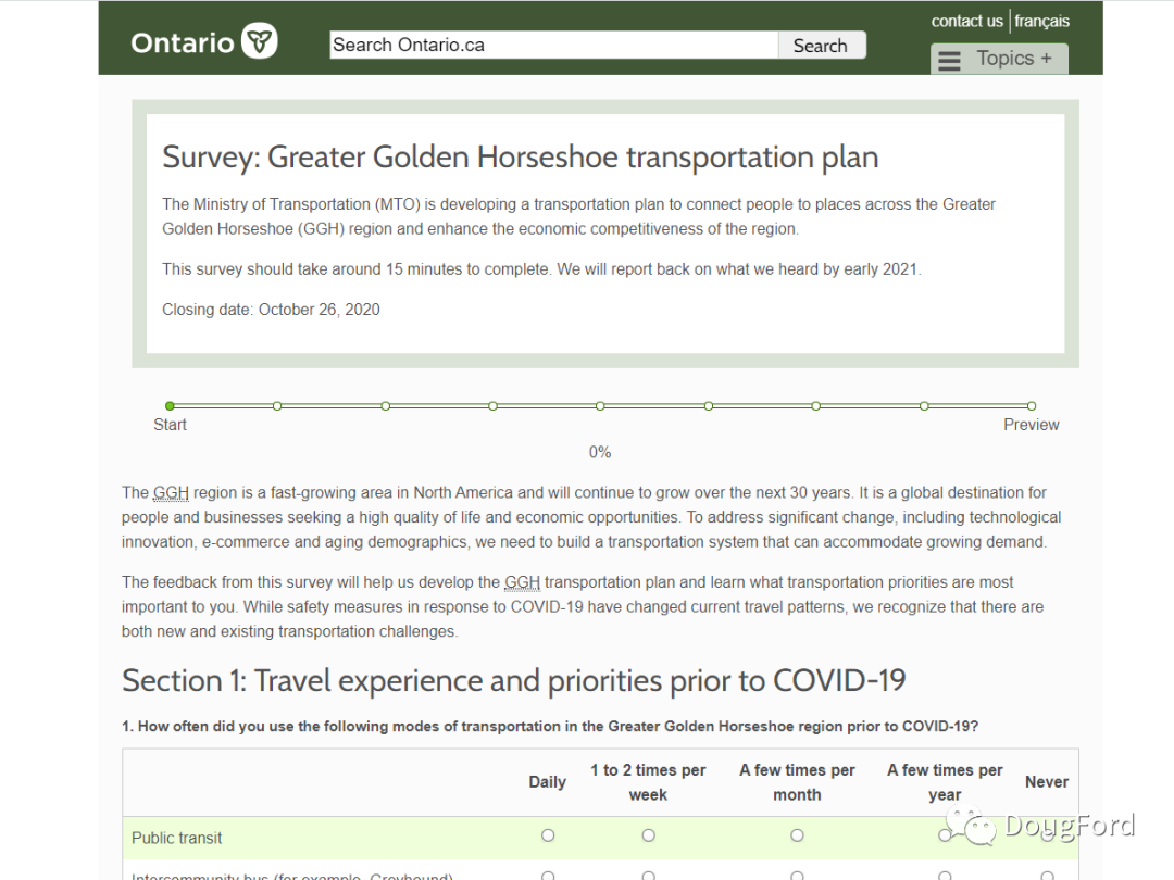省府已发布新调查问卷,意在为大金马蹄地区(Greater Golden Horseshoe)长期交通规划提供建议,并为即日起至2051年的高速公路和公共交通拨款提供意见。(点击阅读原文)