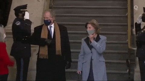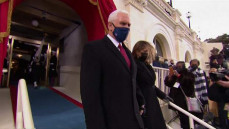 10点左右,美国前副总统彭斯、前总统克林顿夫妇,小布什夫妇以及奥巴马夫妇、参议院多数党领袖麦康奈尔及赵小兰等政要,纷纷戴着口罩抵达。
