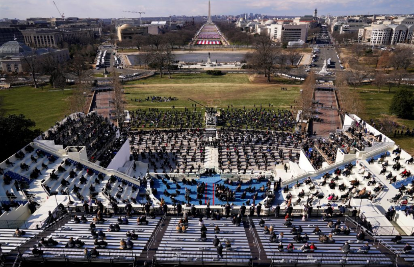 这场就职典礼显得格外特别,与以往各届都不相同:现场没有卸任总统,没有新旧总统夫妇同框,没有宾夕法尼亚大道游行,没有传统的午餐会和就职典礼后晚会,没有举办任何传统的庆祝活动,而是改为线上活动并通过电视播出。