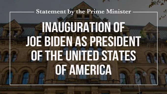 贾斯廷•特鲁多(Justin Trudeau)总理今天就乔•拜登(Joe Biden)宣誓就职美利坚合众国总统发表以下声明: