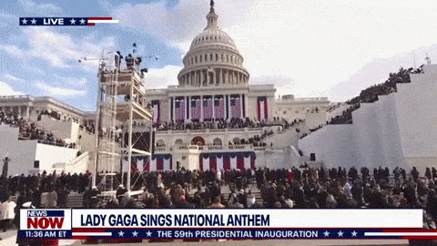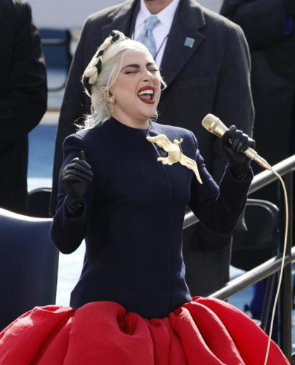 流行天后Lady Gaga演唱美国国歌。Lady Gaga曾在拜登竞选期间为其拉票,她表示对自己能入选总统就职典礼演出感到非常荣幸。