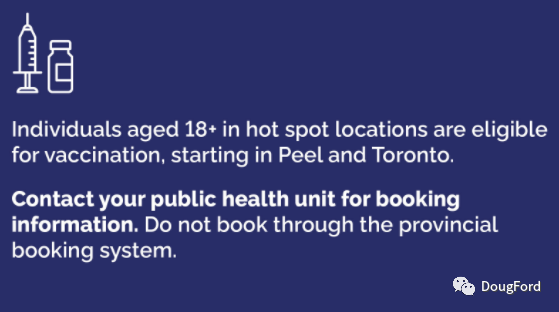 具体操作:以上人群可以访问中央疫苗预约系统https://covid-19.ontario.ca/book-vaccine/ ,或拨打预约电话1-833-943-3900,或者访问当地公共卫生局官网。