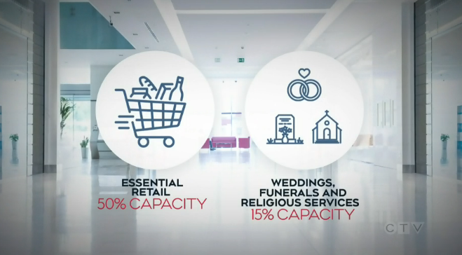 Costco,沃尔玛,LCBO等所有其他商店,包括不是主要出售食品的大型商店以及酒铺和大麻店都将继续营业,其客容量上限为25%。 -