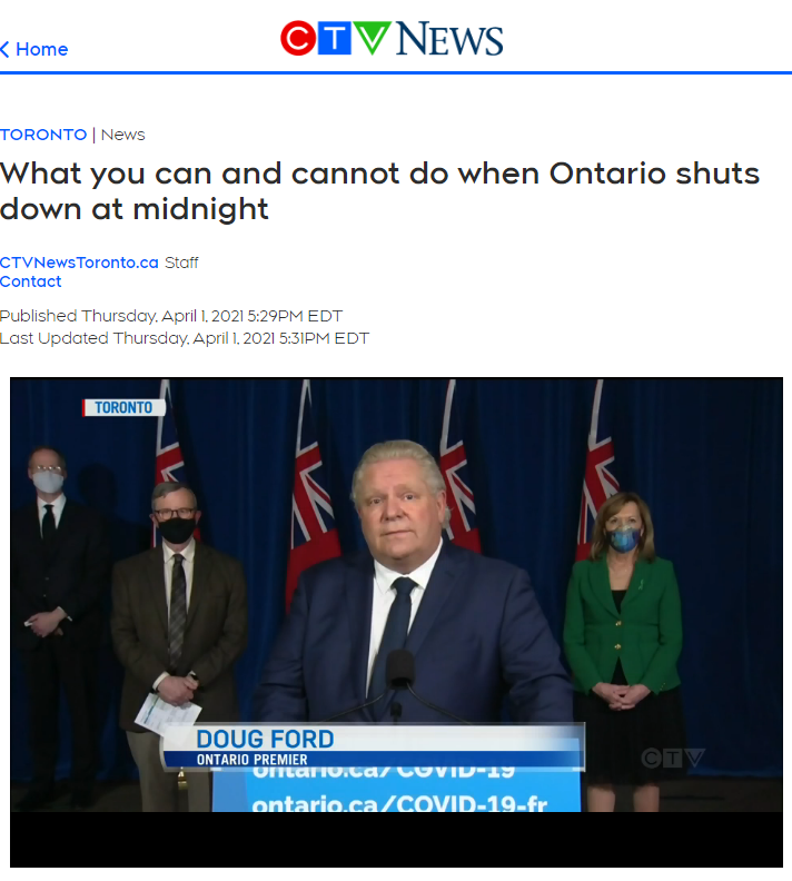 从4月3日星期六零时01分起,安省全省34个卫生区全部启动“紧急刹车”制动措施开始生效!为期28天,以应对不断增加的COVID-19病例和ICU重症监护病房的紧张状况。安省两日暴增6000+,4月2日,新增3089例;4月3日,安省新增3009例,其中多伦多954例,皮尔区434例,约克区348例。