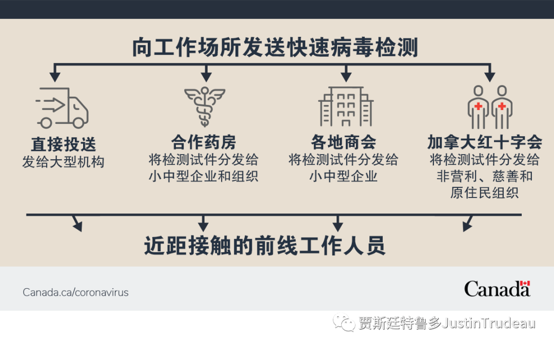 “加拿大联邦政府正在通过多重措施的组合,实施一套多层次的战略应对COVID-19疫情大流行。除了获取疫苗、个人防护设备和其他用品外,我们还将继续采购快速病毒检测套件,以加强加拿大的病毒检测和筛查能力,减少病毒的传播。”