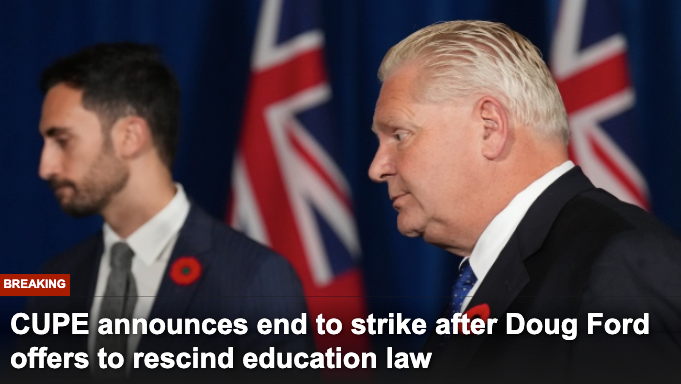11月7日上午,安省政府终于做出让步,代表安大略省 55,000 名教育工作者的CUPE工会承诺在周二结束大规模罢工,学校重开,孩子们可以上学了,家长悬着的心终于落地了。