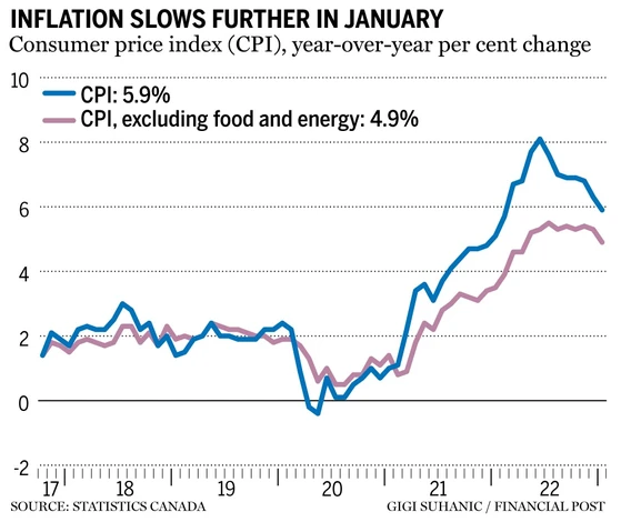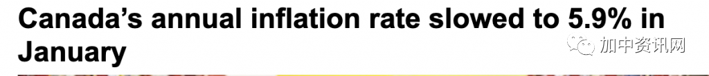加拿大统计局周二公布,一月份年度通胀率降至5.9%,但是食品杂货价格的上涨速度更快。整体通胀率较去年12月的6.3%有所放缓,反映基准年效应。