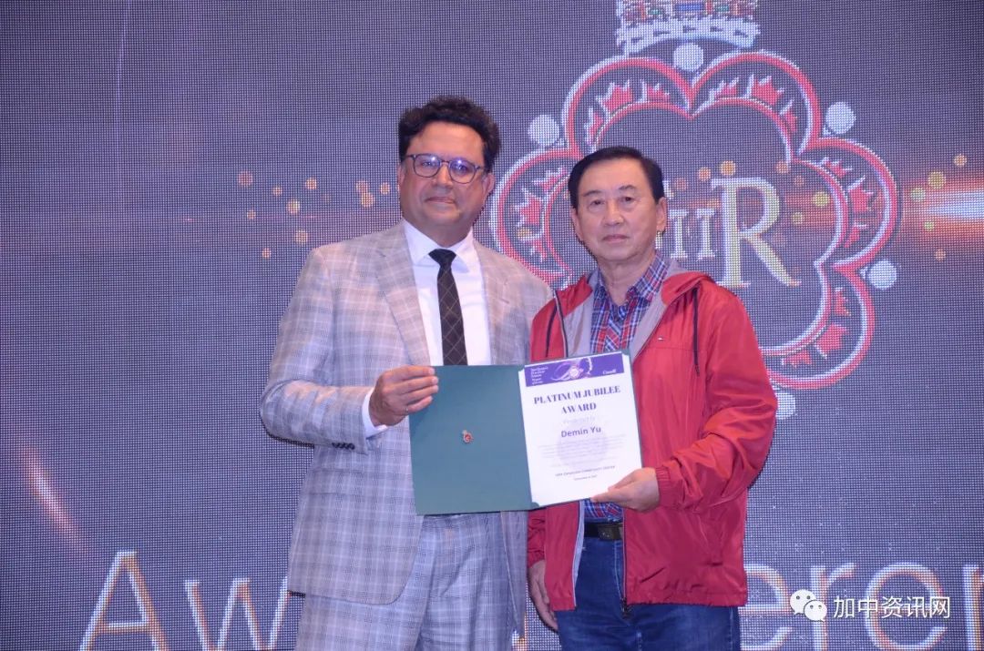 颁奖典礼上,加拿大新华人联合会杨海峰会长首先致辞:向出席颁奖典礼,为百名杰出人士颁奖的国会议员马万里和国会议员叶嘉莉助理Ms.June Ong、陈圣源助理Ms.Judy Yeung,表示深深的谢意!並衷心感谢长期来关注新华会,支持、扶助新华会发展的单位机构,他们今天被授以“英女王登基70周年白金禧徽章”和奖状,当之无愧!杨会长还称赞:今天被授奖的新华会义工,是新华会义工队伍中的姣姣者,是新华会的宝贵财富,理所然地应该获得今天的荣誉!