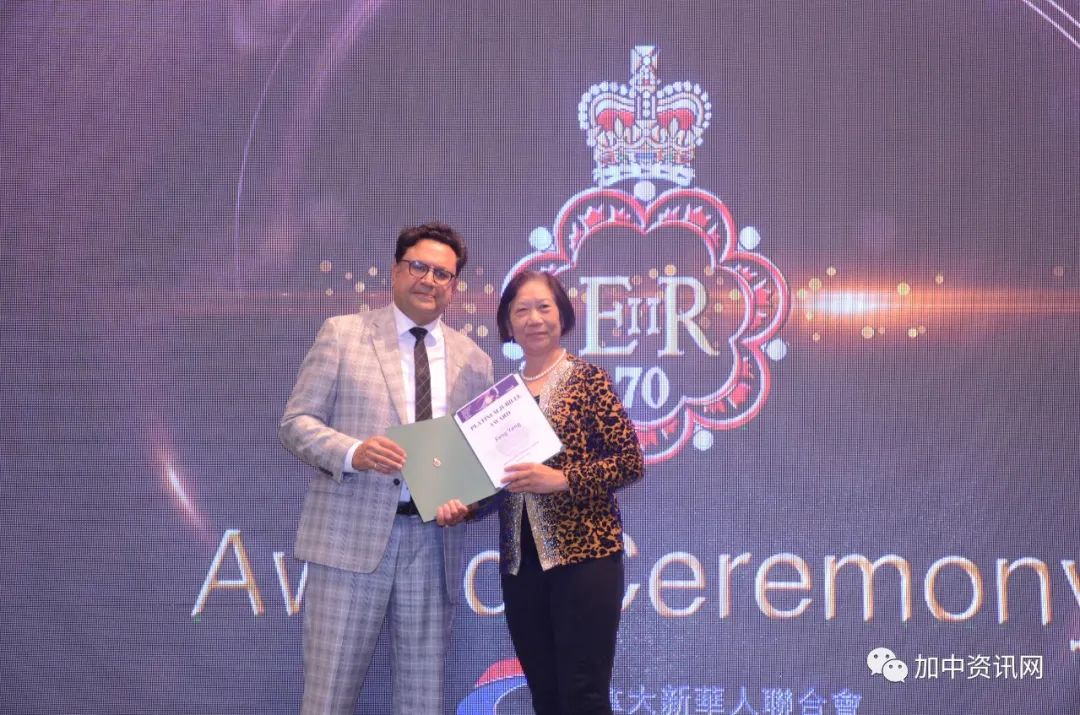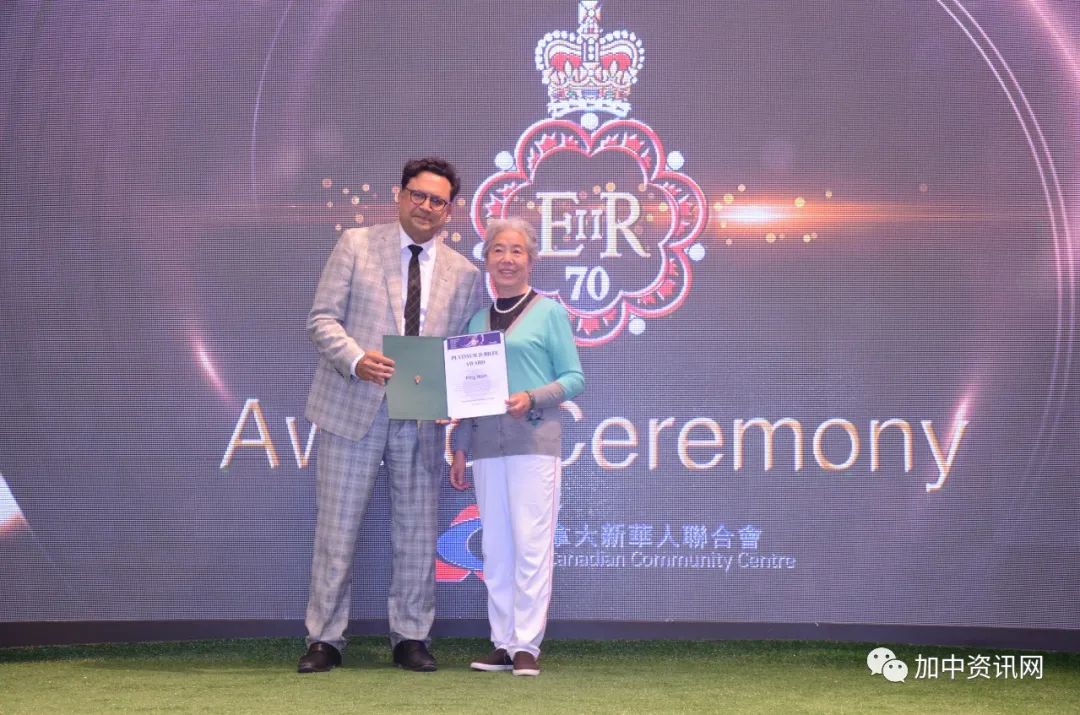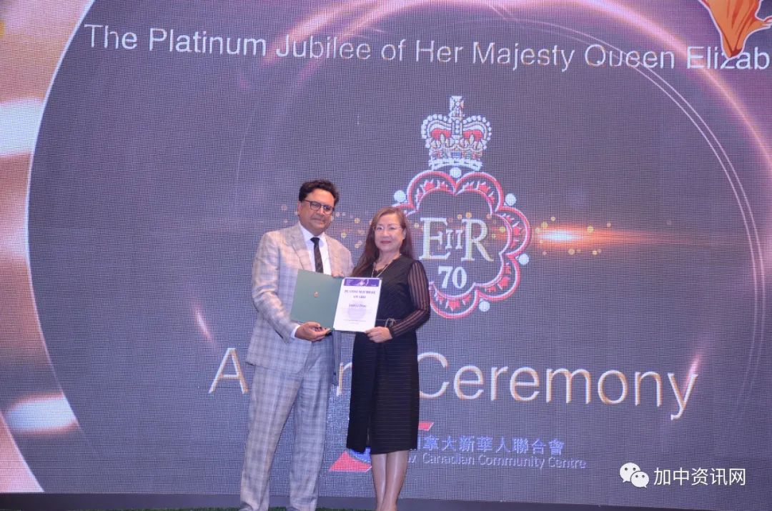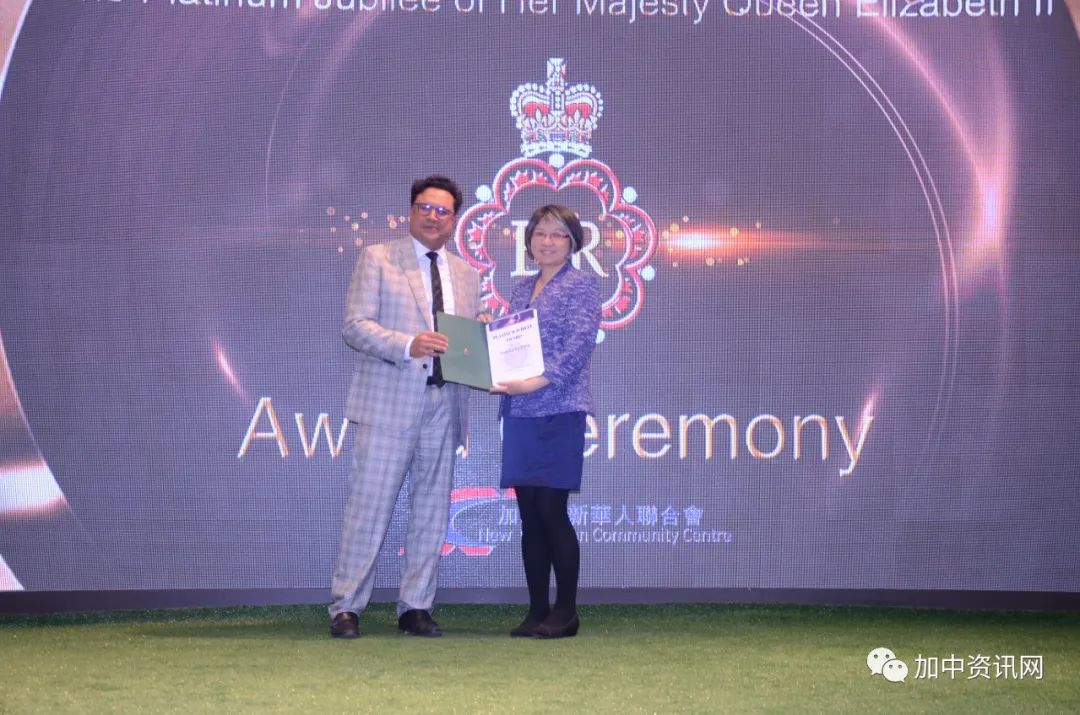 9月6日,加拿大政府对长期服务于华人社区,做出杰出贡献的加拿大新华人联合会一百多名优秀义工颁发了英国女王登基70周年的白金禧徽章。联邦国会议员马万里、国会议员叶嘉丽的助理Ms.JuneOn、国会议员陈圣源的助理Ms.JudyYeung为这些优秀义工颁发了证书和白金禧徽章。