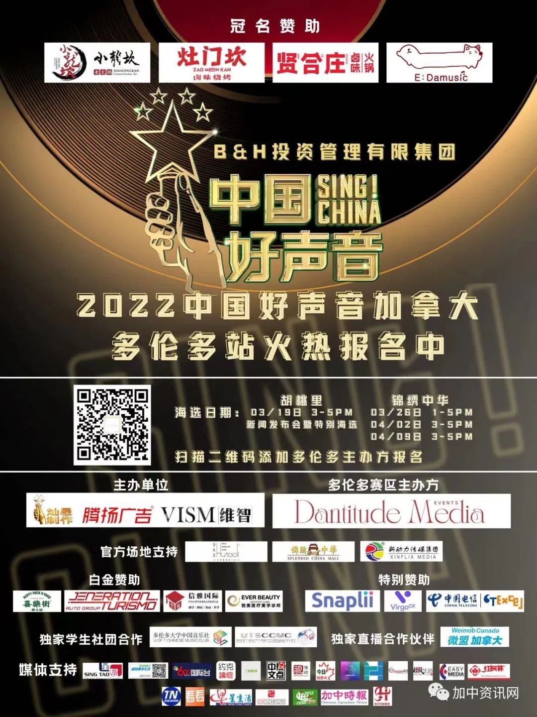 加中资讯网2022年3月23日讯 3月19日下午3时,多伦多出现疫情以来难得热闹的景象。由灿星制作,腾扬广告,维智传媒,多伦多Dantitude Media主办,B&H投资管理有限集团旗下的,由小龙坎,灶门坎,贤和庄,EDamusic冠名赞助的2022中国好声音多伦多赛区新闻发布会暨第一场海选比赛在胡桃里别开生面地成功举行。