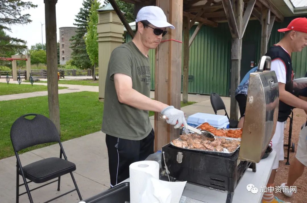 老段 Frank为烧烤组组长,带领全组人员站立五个小时,这其中有财险公司总经理Matt,两位老周等人,他们饱受烤热烟熏,为大家烤出美味的食物。