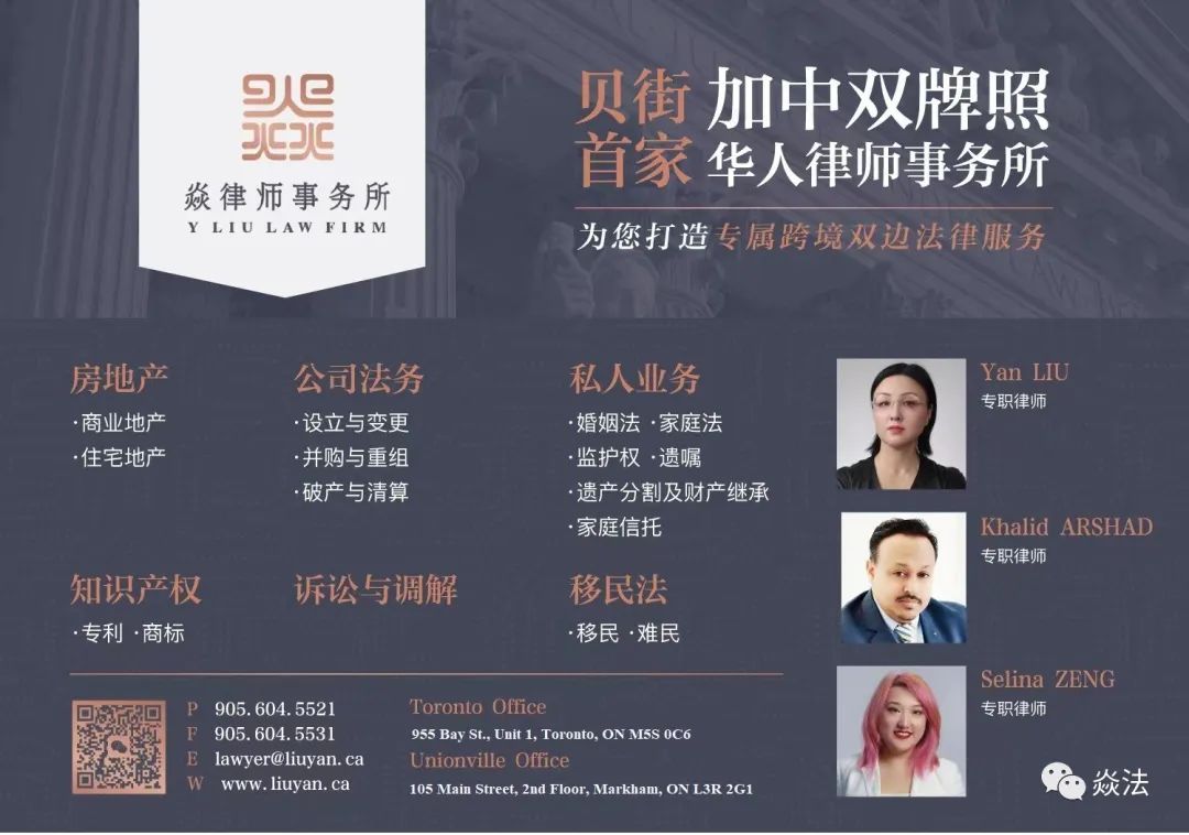 焱律师事务所致力于为华人客户提供双边跨境综合型多语法律服务,充分满足中加两地华人客户的法律需求,不论您是在加拿大还是在中国,为提供量身定制高效便捷、适合您的专业化国际法律服务。