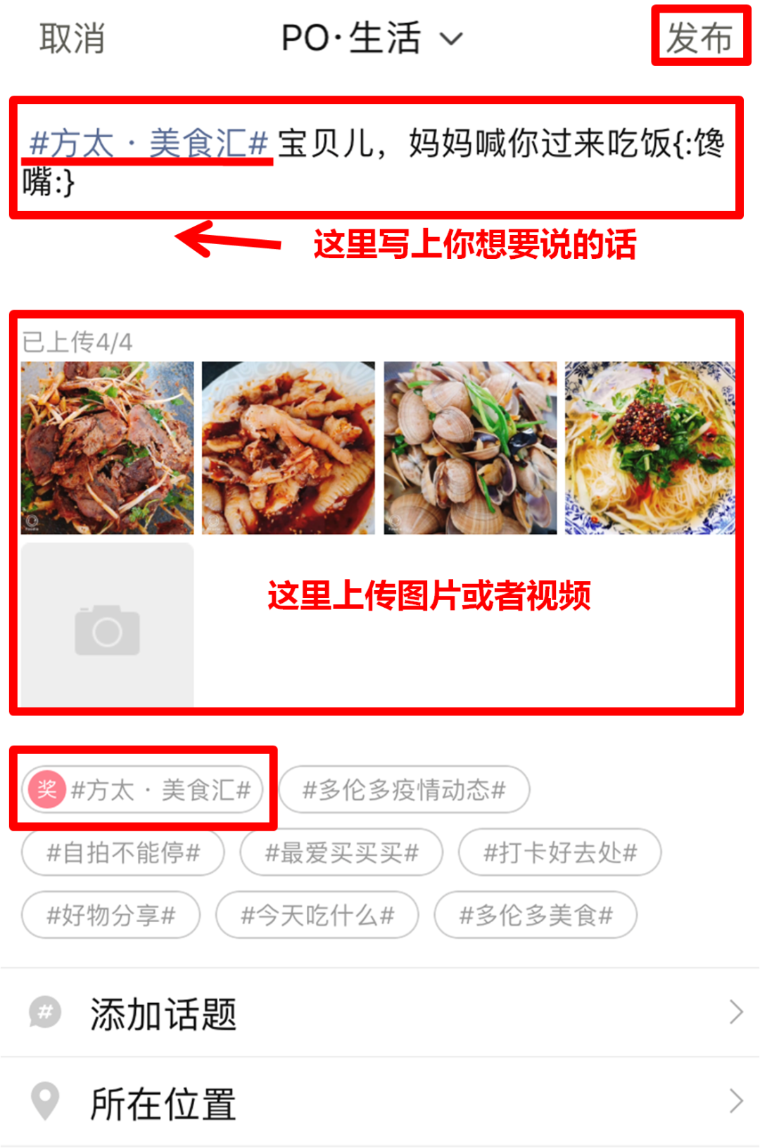 在多伦多生活APP内搜索#方太 · 美食汇#话题,在话题内上传或拍摄美食,或在PO页面拍摄美食并带上话题标签参赛;