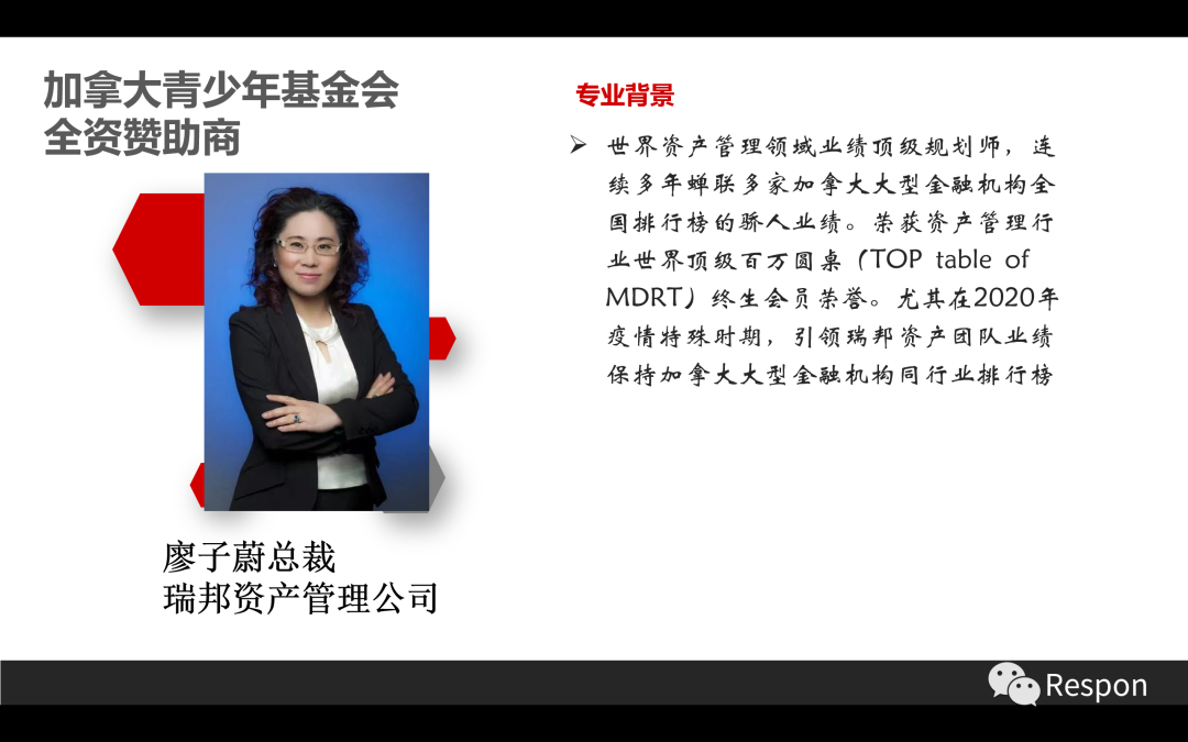 瑞邦总裁廖子蔚将先进的国际财富哲学及资产投资理念带给所有投资者,有北美及中国三十多年金融投资知识及丰富的实战经验。廖子蔚连续多年荣获世界顶级百万圆桌会员(TOP table of MDRT)荣誉,经验业绩傲视同侪,2018年荣获资产管理行业世界权威组织百万圆桌终身会员,成就达84个国家同行世界顶端,曾连续八年蝉联加拿大最大的分红资本金融机构业绩全国排行榜之首的骄人业绩。