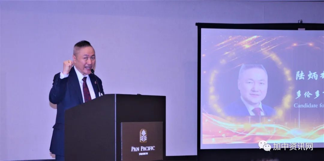 多伦多市长候选人陆炳雄、万锦市约克区域议员候选人孙晓明到场祝贺并致辞。
