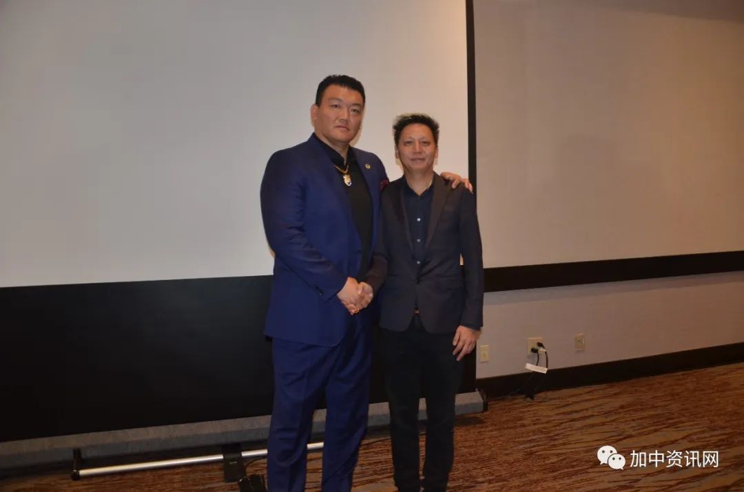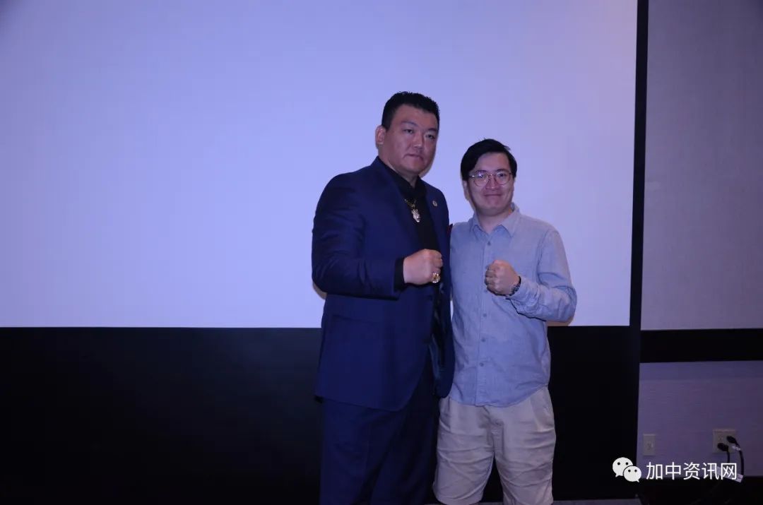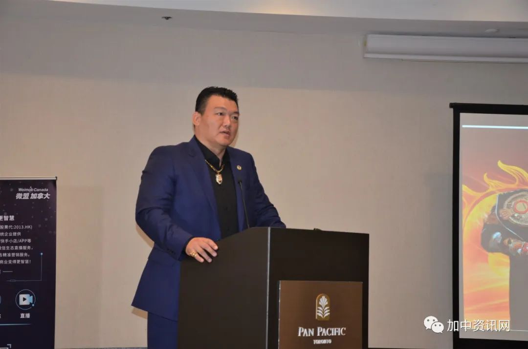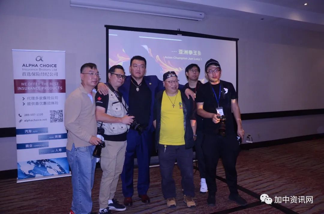 赞助商瑞邦金融总裁廖子蔚视频致辞、新闻发布会赞助商首选保险公司(Alpha Choice Insurance Brokers Ltd)是加拿大最大的华裔汽车保险经纪公司,公司经理兰轶东现场致辞,祝福龙王、预祝拳手们打出风采、打出好成绩!