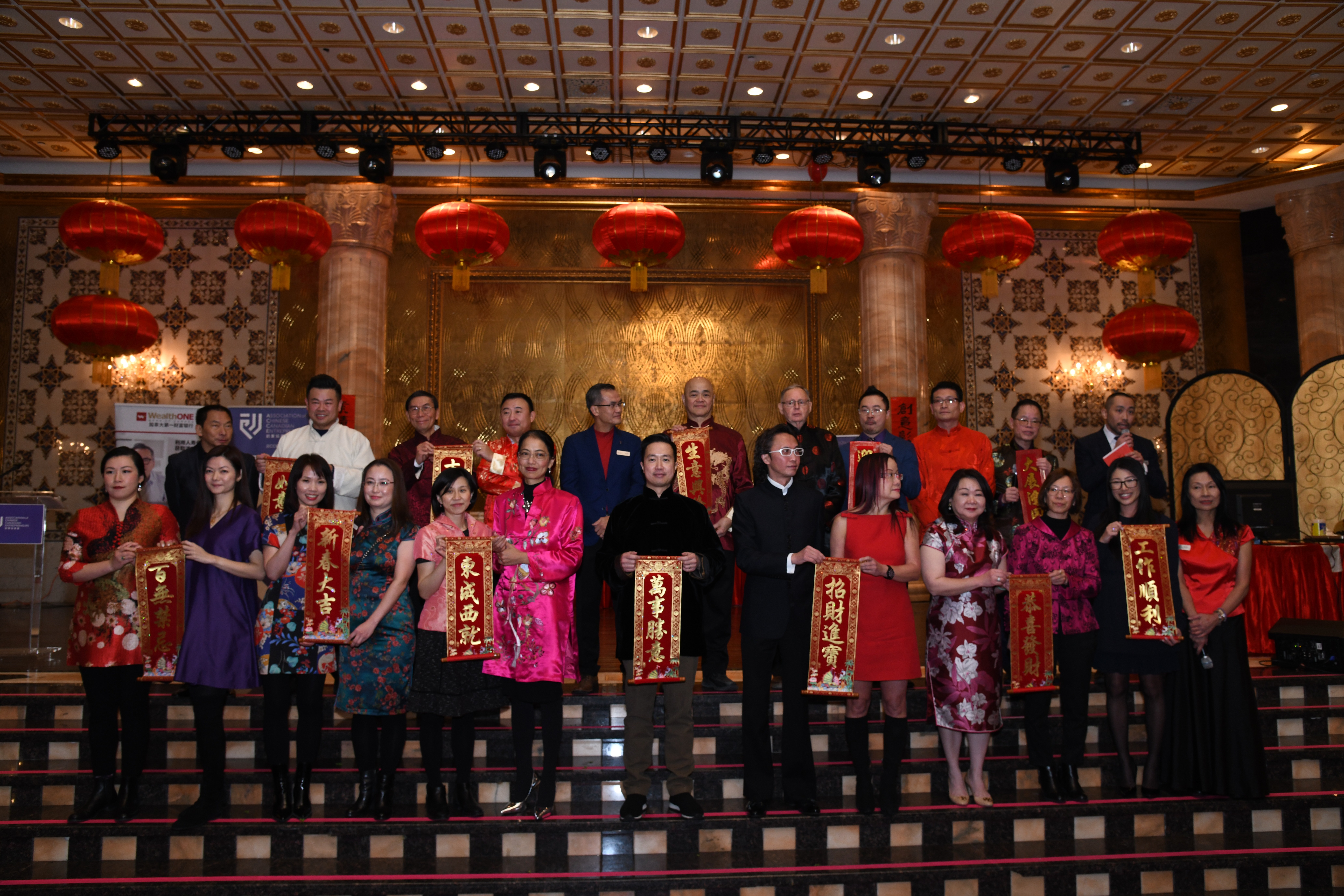 嘉賓與創業協進會歷屆會長及理事合影。(前排左起):馬姍瑚,黃雅芝,張敏,田丹,陳嘉慧, 麥嘉慧, 會長歐陽浩東,勵文灝,鄔婷潔,譚貴瓊, 羅淑儀,Karen Huynh, 蕭君慧。(後排左起):鄺國雄,陳柏堅,黎宏俊,王岩,周憲本, 吳慶華,Alan Hamm, 林育臣,盧明傑,田頌源, 石家輝。