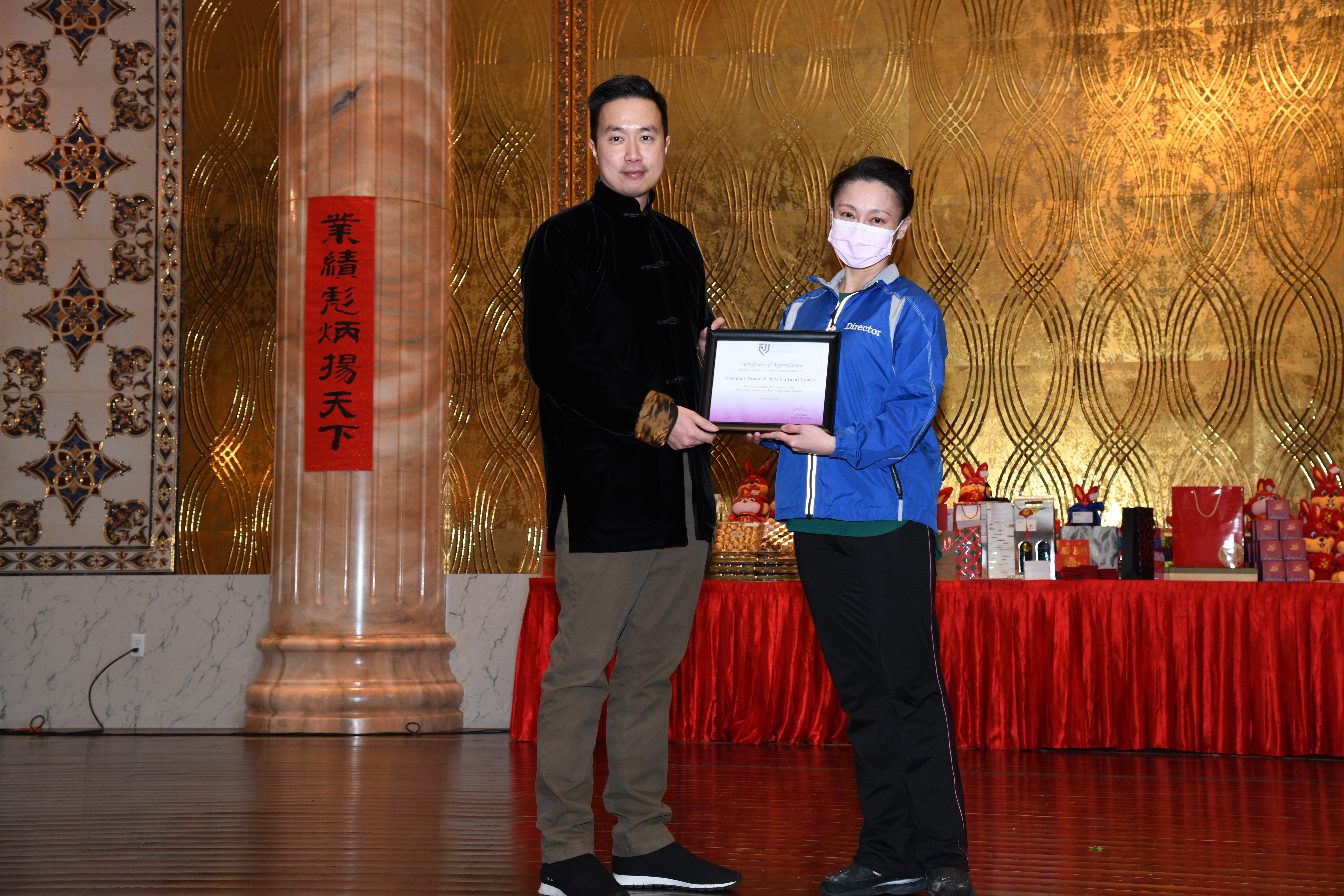 會長歐陽浩東為晚宴表演單位Georgia’s Dance & Arts Cultural Centre校长Georgia Leung頒發感謝狀