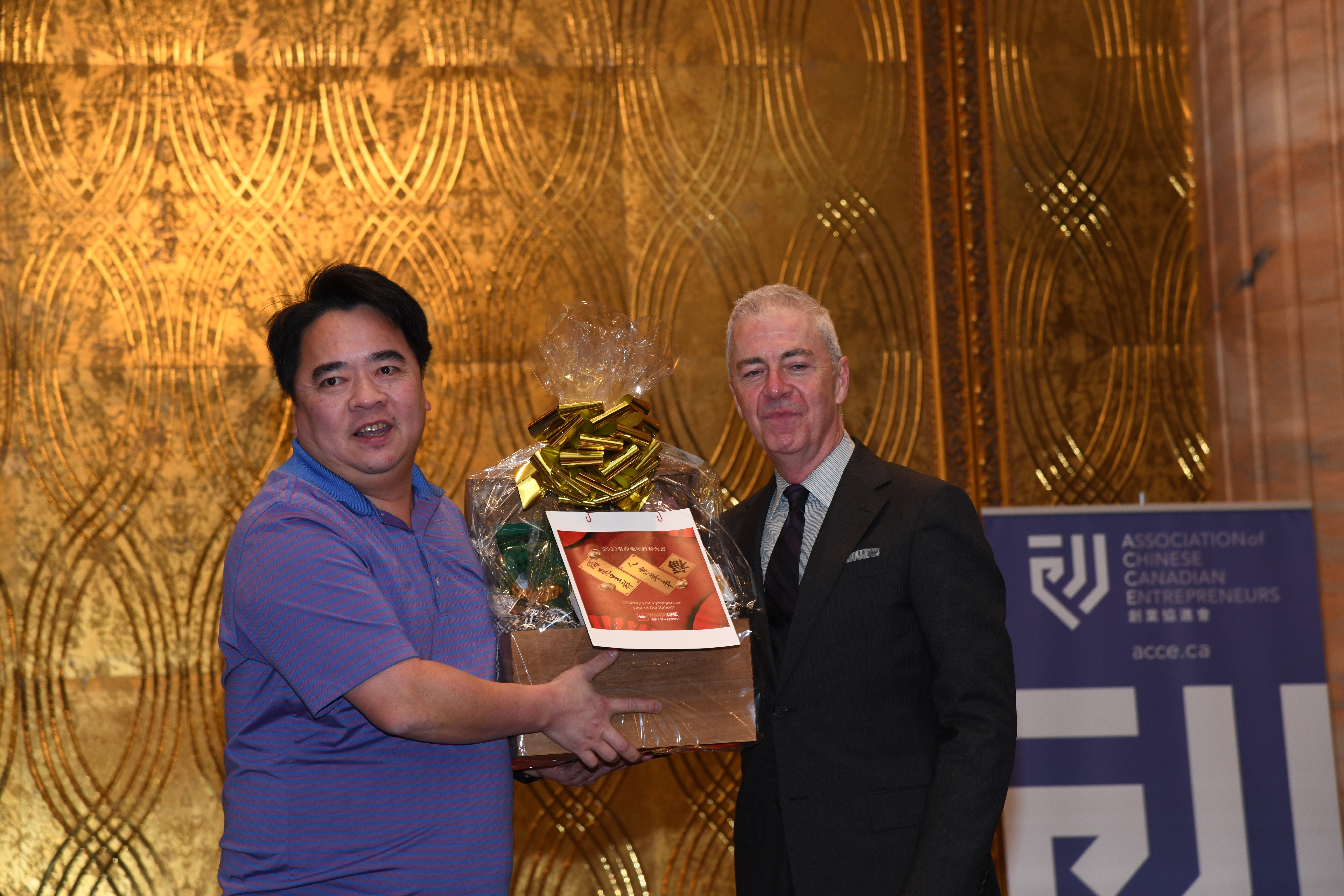 會長歐陽浩東為活動贊助Wealth One Bank of Canada首席營銷官Barry Ferguson頒發感謝狀。