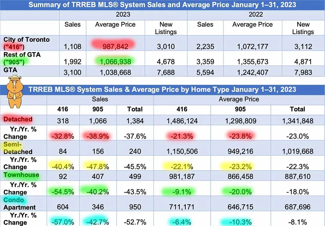 加中资讯网2023年2月10日讯 2月3日,多伦多地产局公布了大多伦多2023年1月的房地产报告。