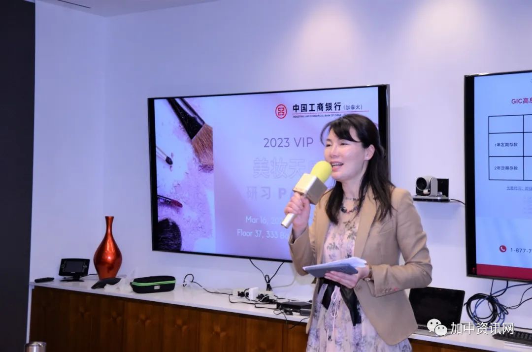 在简介工行特色产品“逸账户”、“加中易汇”和“GIC高息定存”之后,多伦多知名美妆师Annie Dai与来宾分享美妆技巧和心得,分析美妆趋势,并现场演示如何打造疫情后的全新个人形象。