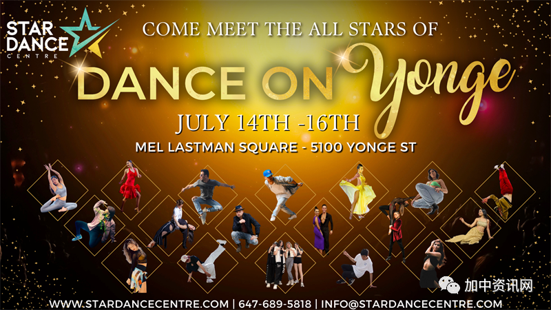 加中资讯网2023年7月6日讯 2023年7月14日(星期五)至7月16日(星期日)下午至深夜,由多伦多市政府和Yonge North York BIA发起,“Star Dance Centre 多伦多星舞蹈中心” 主办,“StreetEats”协办的首届央街舞蹈艺术节, 将在北约克市中心的Mel Lastman Square热辣登场。