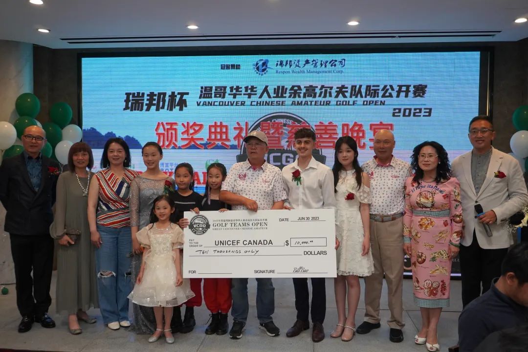 然后,举行捐赠仪式。本届球赛所有收益10,000加元,全部捐赠给联合国儿童基金会。联合国儿童基金会代表领取捐款并表示谢意。