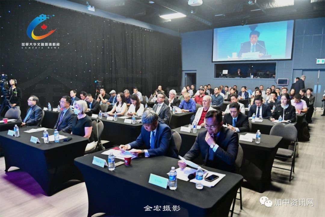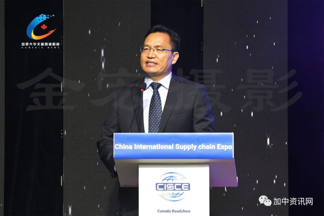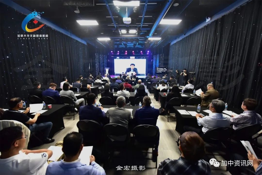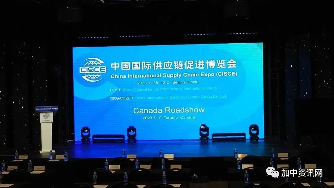 2023年7月10日上午,首届中国国际供应链促进博览会加拿大路演在多伦多新动力传媒集团演播厅举行。