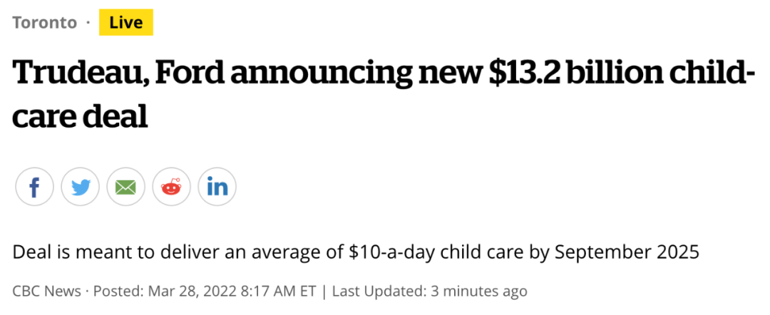 重磅!经过几个月的谈判,安大略省政府已经与联邦政府签署了一项132亿元的儿童保育协议,安省的儿童保育费(daycare)将在4年内逐步降低,到2025年到达每天$10。