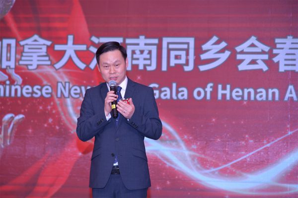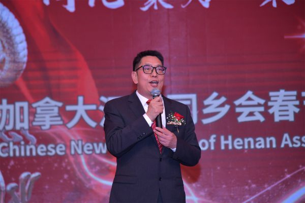 加拿大河南同乡会河南商会会长焦振龙首先致贺辞。首先他代表加拿大河南同乡会理事会热烈欢迎各位嘉宾及乡亲们的到来,并给大家拜年,祝大家龙年龙腾虎跃,事业有成。龙飞凤舞,幸福安康。