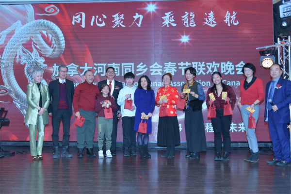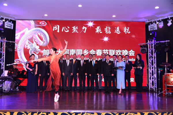 2024年2月16日加拿大河南同乡会河南商会在豪门宴举行“同心聚力,乘龙远航”2024新春晚宴,嘉宾及河南乡亲700多人参加,美酒美食喜人,节目精彩别致,大奖连抽不断,迎来众人一致好评,晚宴结束时众乡亲无人离席,举杯祝愿流连忘返。