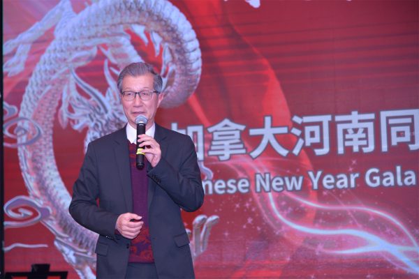 中国驻多伦多总领馆副总领事程洪波致辞说:很高兴出席今晚加拿大河南同乡会举办的春节庆祝活动。首先,我谨代表总领馆向在座各位,并通过你们向领区所有河南籍侨胞致以龙年新春的诚挚问候和节日的美好祝福。九州之腹,中天而立。河南是中华文明和中华民族的重要发祥地。人们常说,一部河南史,半部华夏史。五千多年中华文明历史长河中,河南有三千多年是中国政治、经济、文化的中心,成为支撑中华文明延绵至今的物质和精神坐标。今日之河南,和今日之中国一样,处处呈现创新发展的良好态势。近年来,文化国潮风起,河南频频“破圈”,可以说是生动例证。