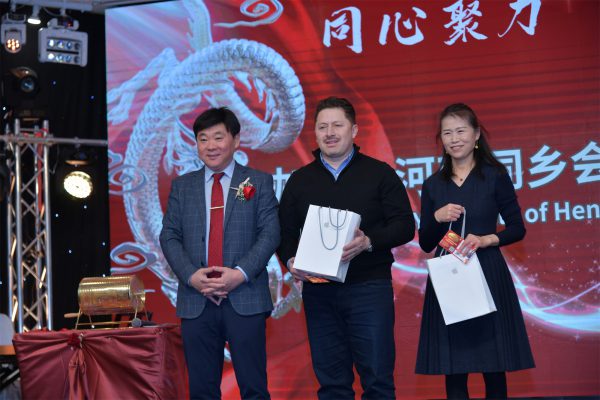 由河南同乡会副会长张义戈,同乡会副秘书长张晓静,刘一涓,青年会会长韩旭 ,理事DAVID ZHANG上台抽取理事会提供的5个奖品