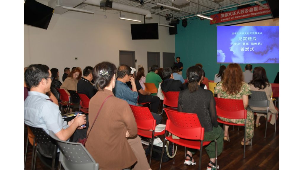 2024年6月28日加拿大海峡文化交流基金会和加拿大华人同乡会联合总会在 Top Kids Education Center提供的场地(41 Scarsdale Rd Unit 7 & 8, North York)举办了《童声童心同世界》纪实短片首发式。加拿大海峡文化交流基金会负责人和加拿大华人同乡会联合总会所属的省级和直辖市同乡会、直属部门负责人以及加拿大江西同乡会赣江情诗社的全体编辑到会参加了纪实短片首发式。