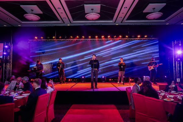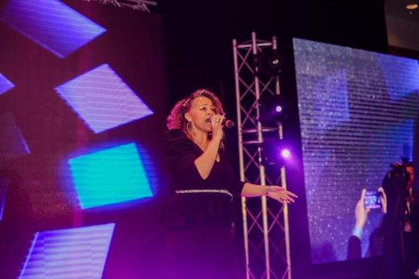 活动由2位赛博朋克风的LED电子舞者带来的动感开场表演、知名西人女歌手Amber的深情独唱,以及多伦多华裔乐队Cornerstone演绎的经典中英文歌曲,将⼤会推向⼀个⼜⼀个高潮。这些表演既展示了东西方文化的交融,引领大家来到全新电子技术新时代,也让参会者在专业探讨之外,享受了⼀场视听盛宴。