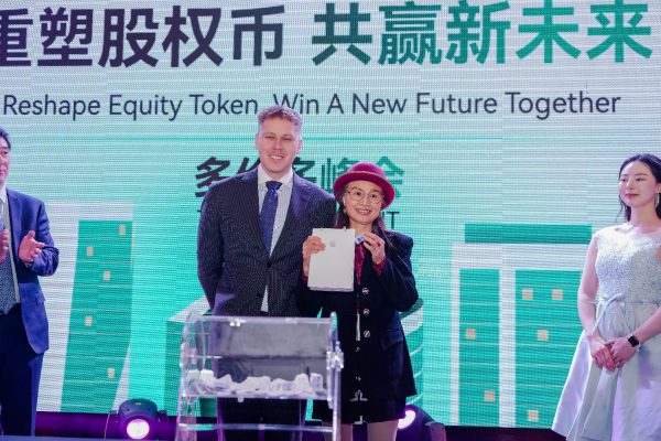 受任后Mr. Jack 发表了慷慨激昂的致辞,并在致辞结束后再次邀请另外两位CEO上台,共同进行了启动项目仪式暨此次⼤会的重磅环节――GCGL 股权映射代币的发布,并成为了全场关注的焦点。GCGL 作为⼀款创新代币,开创性地将传统股权投资与区块链技术结合在⼀起。持有者通过 GCGL 能够间接享有 UbitEx 上市后的股东权益,真正实现“⼈⼈都是股东”。这⼀代币创新性地采⽤了“先布局、后分红”的模式,允许⽤⼾在平台早期阶段以较低成本获得未来的分红权利。