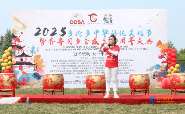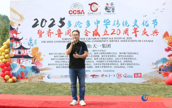 当天,在现场所有人合唱加中两国国歌之后,加拿大华人联合总会(CCSA)会长牛华首先致辞,他说:“「中华传统文化节」在温哥华做了17年,今天又带到了多伦多,下一步也推行到蒙特利尔。我们在此推广中华传统文化不仅是为了纪念两百多年以来我们的华人华侨为加拿大这个国家、这片土地所做出的巨大的贡献,也是为了把我们中华文化在加拿大这个国家发扬光大,我们宣扬的中华传统文化不仅属于我们华人社区也属于加拿大所有的社区,因为加拿大是一个多元文化的国家,我们把中华传统文化作为加拿大的主流文化之一,在这片土地和宣传和发扬,希望我们的下一代和我们所有的其他的族裔都能把这个中华传统文化丰富、继承和发展下去,这是我们来此的目的。今天,我特别感谢我们加拿大齐鲁同乡会孙校长以及同乡会为这个文化节做出贡献的各位理事们,我也感谢我们多伦多所有联合主办这个活动的各协会会长。祝大家有一个非常愉快的下午,让我们把中华传统文化在多伦多发扬光大。”