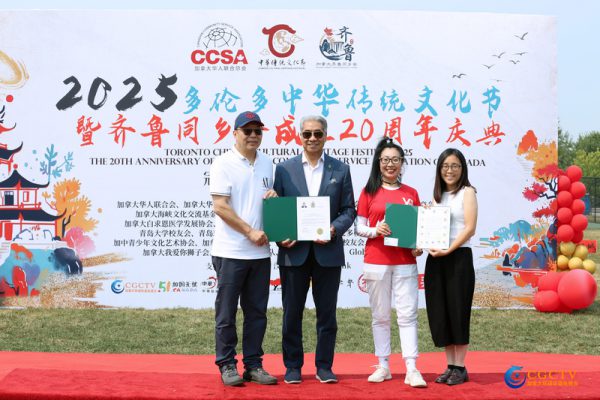 加中山东总商会执行会长未鹏、加拿大齐鲁同乡会执行会长王瑞军、加拿大齐鲁同乡会会长孙善勤、加拿大齐鲁同乡会执行会长公茂坤、加拿大齐鲁同乡会执行会长诸葛祥钻、加拿大齐鲁同乡会执行会长George Liu、加拿大齐鲁同乡会执行会长James Zhong、加拿大齐鲁同乡会秘书长马利、加拿大齐鲁同乡会执行会长耿申、加拿大齐鲁同乡会理事李博实、加拿大齐鲁同乡会副会长陈娜、加拿大齐鲁同乡会理事方正宏、加拿大齐鲁同乡会执行会长颜俊、加拿大齐鲁同乡会执行会长柳元宗、加拿大齐鲁同乡会理事Ethan Tian、爱尚艺术团团长Grace Yin、多伦多女子龙鼓队王瑞荣、加拿大上海协会会长沈谢元、环球华语技术负责人Charles Fu、加拿大华人联合会理事陈子婧、加拿大华人联合会理事、本次活动的法律支持Elsa Sha Liu、加拿大齐鲁同乡会理事蓝向丽(Sally)、加拿大齐鲁同乡会理事Roger Xiu、加拿大齐鲁同乡会理事/主持人Patrick Yang、加拿大齐鲁同乡会理事Tiger, 由政要嘉宾颁发。