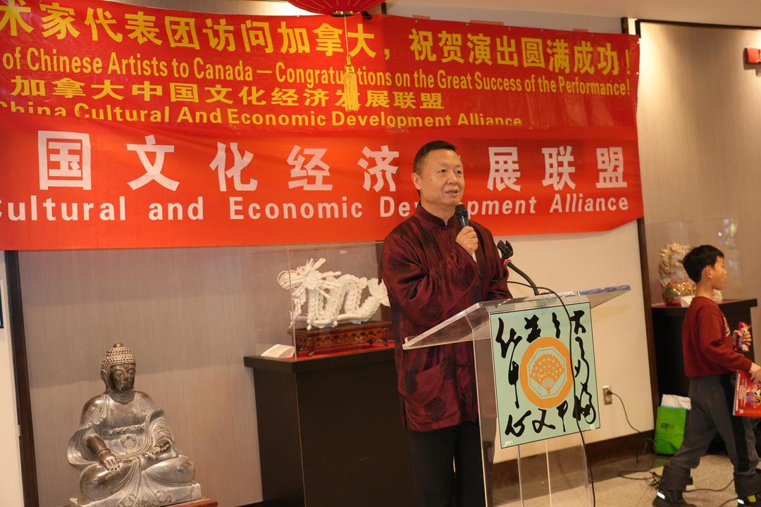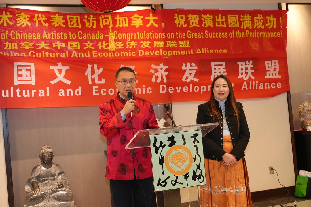 演出开场前的酒会由著名主持人郭然主持,在仪式中,加拿大中国文化经济发展联盟主席、加拿大华人同乡会联合总会共同主席、2026年”欢乐春节“海外戏曲春晚总策划索菲亚·廉(Sophia Lian)首先致辞:多年来,我们致力于通过举办"欢乐春节"海外戏曲春晚,将中国的非遗传统文化和博大精深的戏曲艺术带到加拿大及世界的每一个角落。感谢所有艺术家、赞助商、社区各届、演职人员和义工的共同努力,让我们得以在异国他乡共庆新春,共享中华经典文化之美,共建和谐世界。希望这场晚会能成为大家马年新春里一段难忘而美好的回忆。”她表示希望通过“欢乐春节”海外戏曲春晚,让中华优秀传统文化在海外绽放更加夺目的光彩,让更多不同族裔的朋友走近中华戏曲、了解中国、感受东方艺术带来的独特魅力,同时也进一步增进中加两国的民间艺术的深度交流与往来合作。