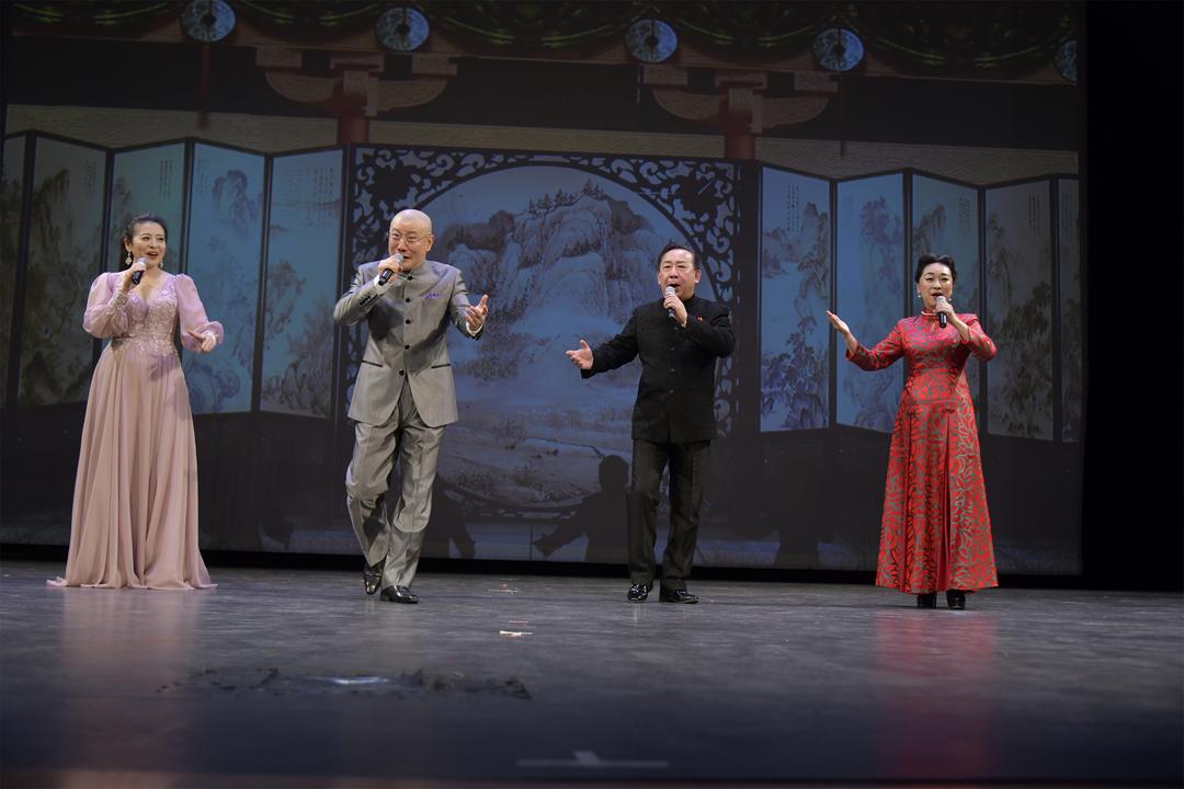 最后,安平、费佳、张旭东三位老师与Sophia Lian主席共同演绎样板戏《今日痛饮庆功酒》,将晚会气氛推向最高潮。