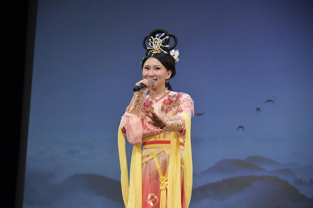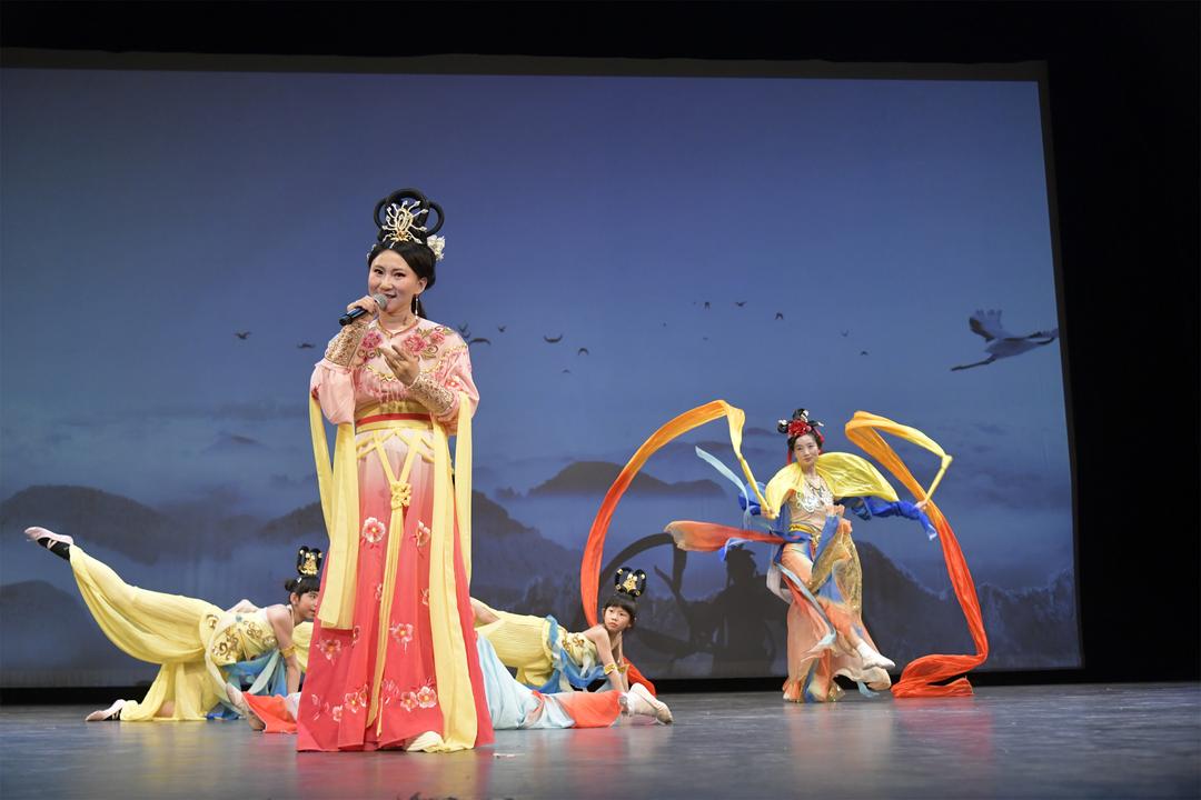 Mu Vocal Art Studio的张筱萌老师演唱黄梅戏《天女散花》,星帆艺术中心伴舞,仙气飘飘,歌韵美妙。马春玲与张文秀联袂深情献上京剧《赤桑镇对唱》,生动鲜活,戏旗组伴舞助阵。著名女高音岳新带来评剧《报花名》,唱作清新生动,歌声美妙,青衣组伴舞。罗歆瑶老师演唱古风歌舞《相思遥》,多伦多金梦艺术中心的小白、Nancy等伴舞,意境优美。