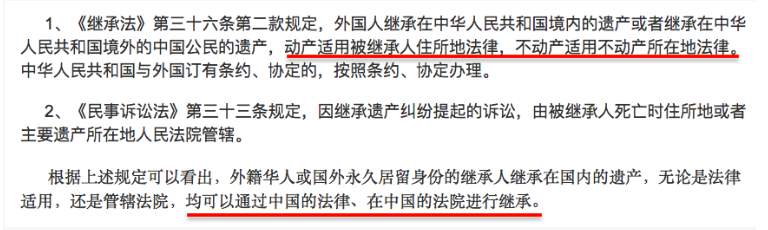 不动产是根据房产所在地的法律进行分配,外籍华人如果被指定为继承人,只要通过中国的法律,或者在中国的法院可以完成继承手续。相反,加拿大法庭对加拿大境外的土地和房产没有执法权。