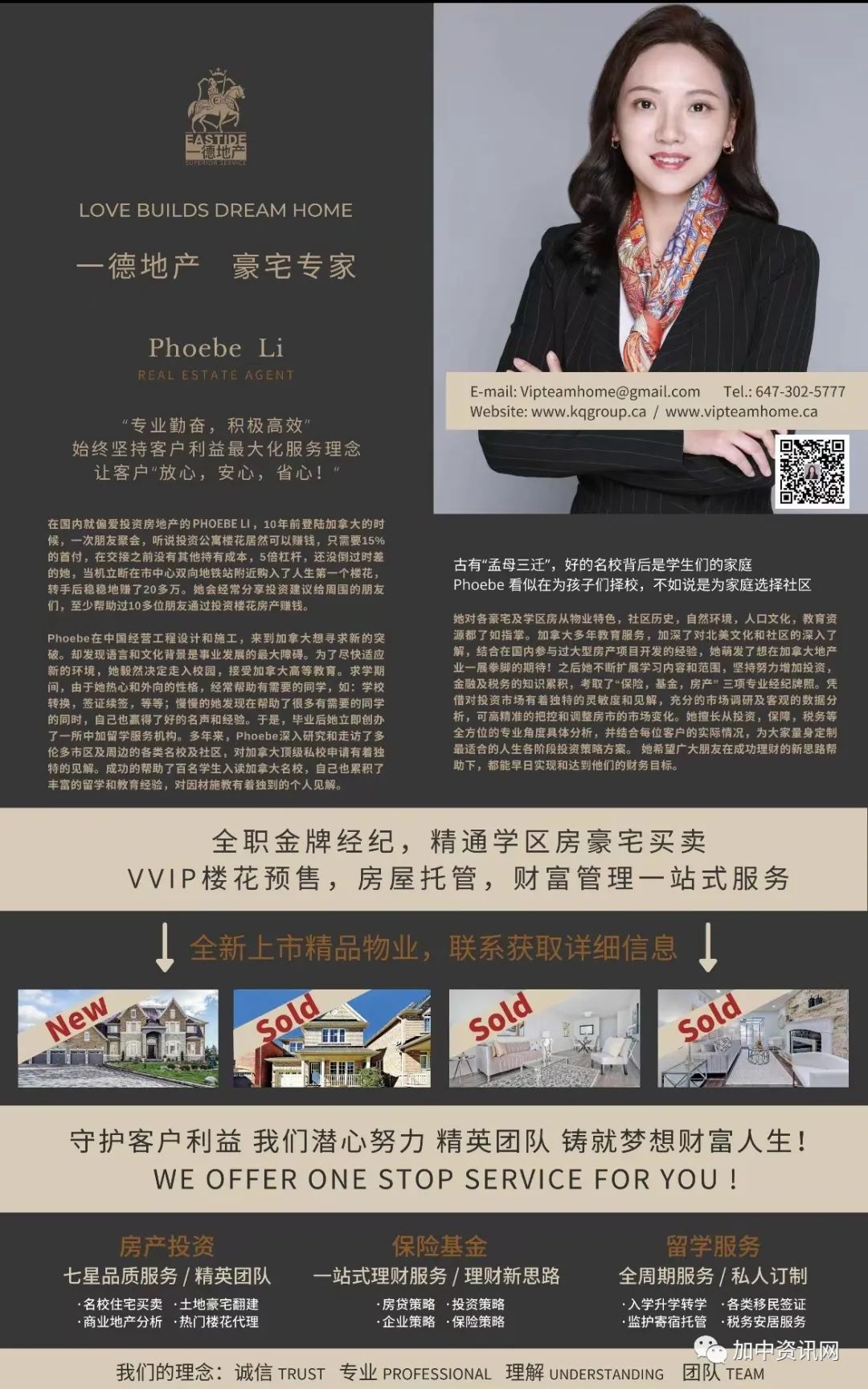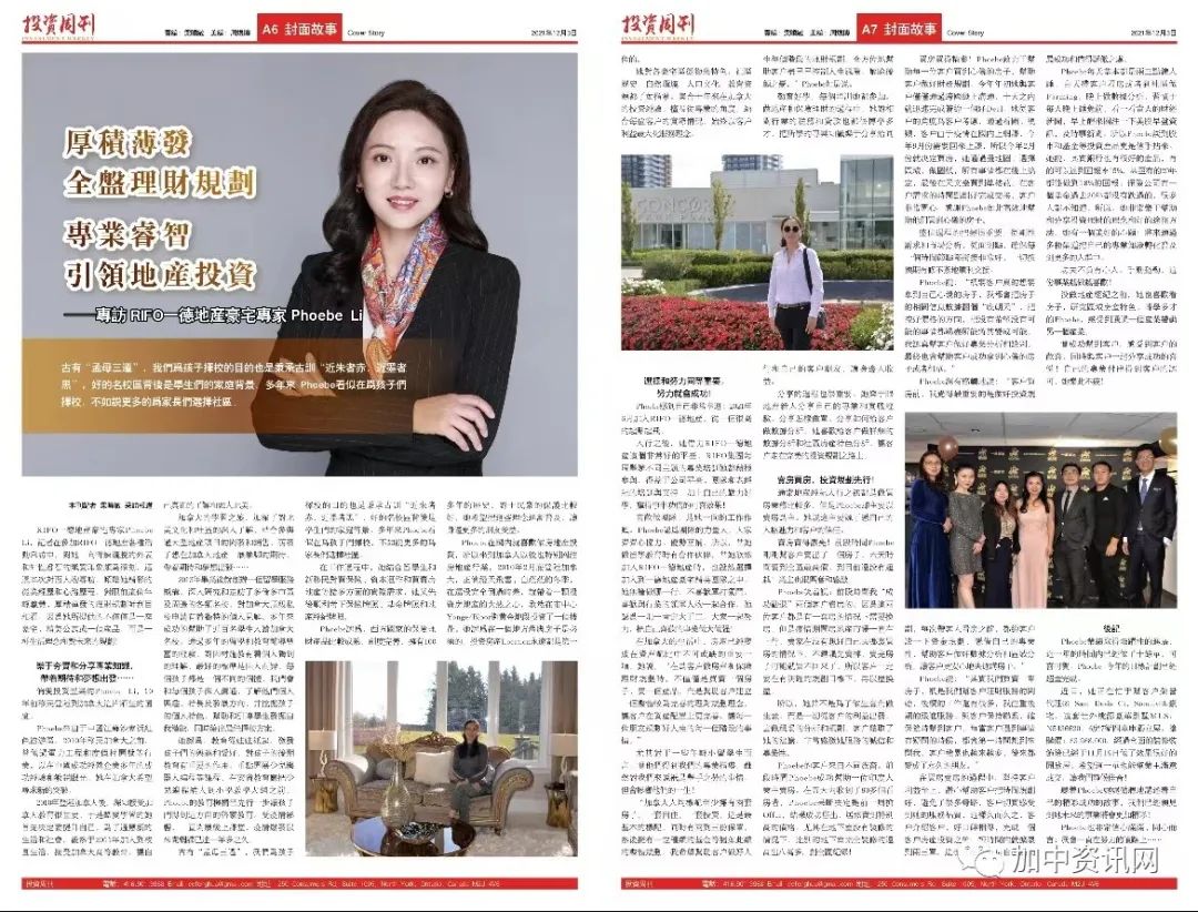 “加拿大人均标配至少拥有两套房子,一套自住、一套投资,这是最基本的标配,同时有两到三份保单,然后拥有一定种类的基金等诸如此类的整体规划。我希望帮助客户做好人生每个阶段的理财规划,全方位地帮助客户尽早控制人生风险,解除后顾之忧。”Phoebe如是说。