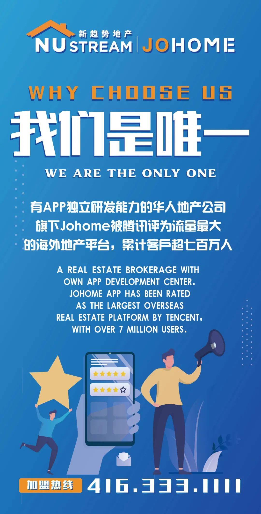 新趋势以开放共赢的态度谋求合作,期望与合作伙伴共同成长,共同推动房产互联网行业的健康发展,团队模式+互联网是公司发展的双引擎,Johome是公司全球化战略的重要基石。