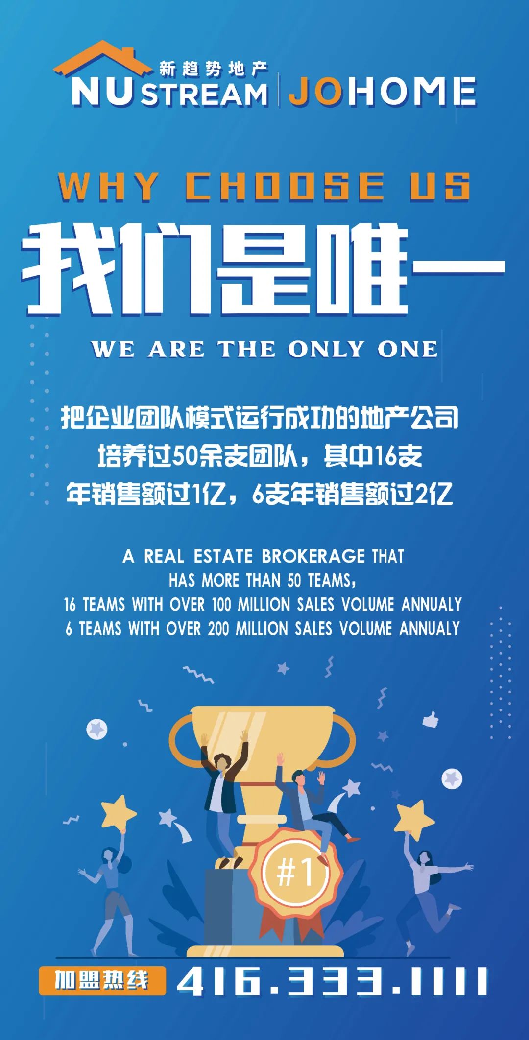 作为一家不断创新、锐意进取的新型地产经纪公司,新趋势是有App独立研发能力的华人地产公司,旗下Johome被腾讯评委流量最大的海外地产平台,累计客户超过700万人。公司自成立以来,在短短5年内已培养过40余支团队,其中16支年销售额过1亿,5支年销售额过2亿,今年甚至出现了销售额过5亿和6亿团队。