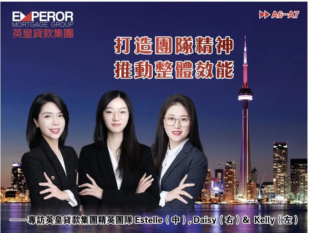 团队组合在多伦多地产经纪中常⻅,但在贷款经纪中并不多⻅。作为团队中刚入行不久的Kelly说:“首先,由于我们各自具备专业背景,涉及的业务知识让 我们很互补。Estelle学的就是财经专业,Daisy是销售出身,而我则是做市场 推广的。我们各自有自己擅⻓的领域,携同服务客户,这样对于客户来说,便 是一份承托,获得的却是多重服务。”